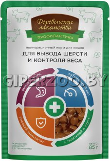 Деревенские лакомства вывод шерсти и контроль веса (телятина в соусе), 85 гр