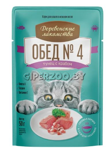Корм для кошек, в основу рецепта которого мы выбрали тёмное мясо тихоокеанского тунца с нежной текстурой и ярким ароматом морской рыбы. Блюдо идеально сочетает насыщенные вкусы кусочков крабового мяса и тунца. Подаётся в нежном желе. Вес (нетто): 50 г Состав: тунец, краб, желирующая добавка, витамин E — 5 мг-кг, рыбий жир — 5 мг-кг, таурин — 5 мг-кг. Пищевая ценность на 100 г продукта, %: протеин — 11, жир — 0,1, клетчатка — 1, зола — 3, влажность — 86; энергетическая ценность — 61,49 ккал. Логистика: 12 паучей в шоу-боксе Срок годности: 24 мес. Хранить в прохладном и сухом месте. Мясо: Рыба Мясо: Морепродукты