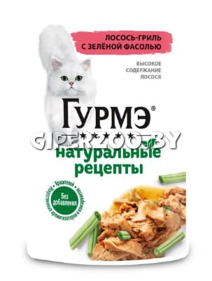 Gourmet Натуральные рецепты Лосось-гриль с зеленой фасолью – влажный корм для взрослых кошек с лососем.