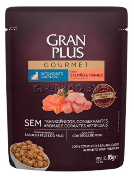 GRANPLUS CAT STERILIZED пауч для стерилизованных кошек лосось и цыпленок — полноценный сбалансированный рацион для стерилизованных кошек и кастрированных котов, а также для склонных к набору избыточного веса.