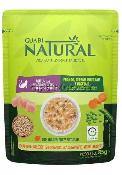 Guabi Natural для взрослых кошек (Курица, цельнозерновые злаки и овощи) — дополнительный консервированный влажный корм для кошек.