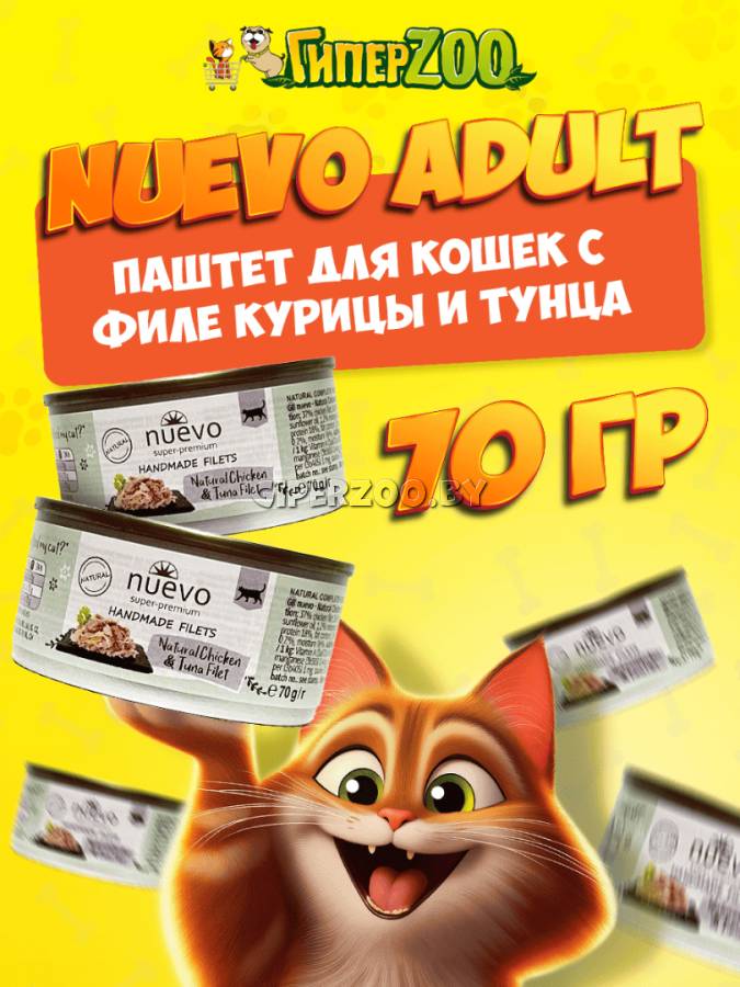 Консервы для кошек Nuevo Handmade Filets Adult Cat (курица, тунец), 70 гр – натуральное филе из курицы и тунца сочетает в себе два любимых вкуса практически любой кошки. Консервы созданы специально для взрослых кошек, чтобы обеспечить их необходимыми питательными веществами и порадовать изысканным вкусом. Поскольку в нем содержится все, что необходимо вашей кошке на ежедневной основе, это первое в своем роде комплексное решение для кормления, приготовленное вручную из тончайшего нежного филе. Богатое мясо в сочетании с желе, витаминами и минералами сделает это блюдо любимым блюдом вашего пушистого друга на все времена.