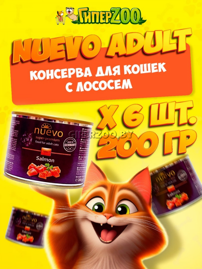 Консервы для котов Nuevo Adult с лососем, 200 гр*6шт