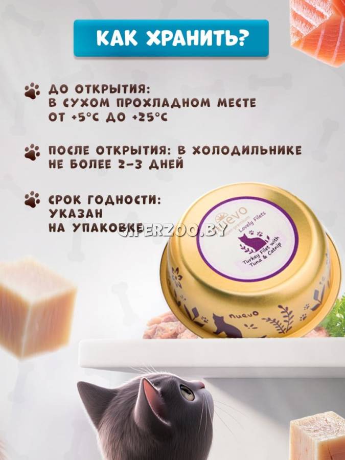 - Высококачественные ингредиенты: Корм содержит натуральные ингредиенты, такие как филе индейки и тунец, что делает его не только вкусным, но и полезным.
