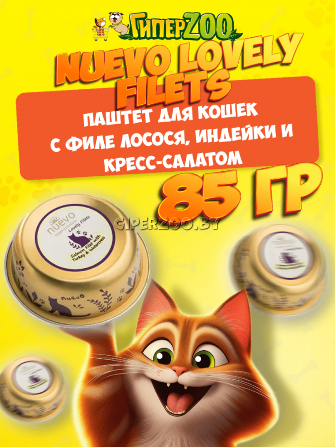 Влажный корм для кошек Nuevo Lovely Filets с филе лосося, индейки и кресс-салатом – это супер-премиальный корм, который сочетает в себе нежные кусочки филе лосося и индейки с добавлением кресс-салата. Этот корм разработан для обеспечения сбалансированного питания и удовлетворения вкусовых предпочтений вашего питомца.