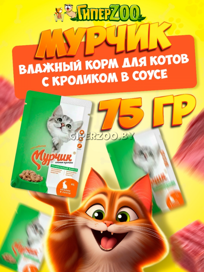 Текстура корма представлена в виде кусочков в соусе, что делает его привлекательным для кошек. Корм "Мурчик" относится к эконом-классу, что делает его доступным для широкого круга потребителей.