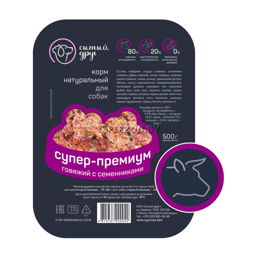 Полнорационный сбалансированный мясной корм с овощами и фитокомпонентами, обеспечивающий биологически соответствующее питание для вашего четвероногого друга.