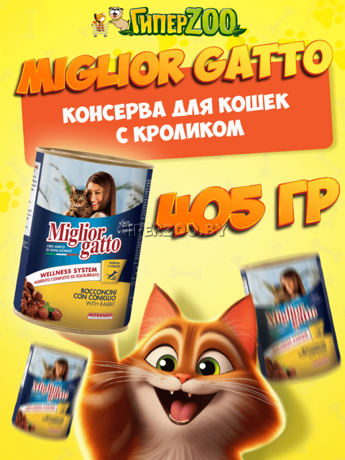 Miglior Gatto Консервы (Кусочки с кроликом) — влажный корм для взрослых кошек.