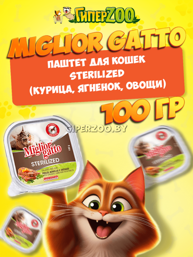 Miglior gatto Sterilized паштет с курицей, ягненком и овощами - влажный корм для стерилизованных котов.