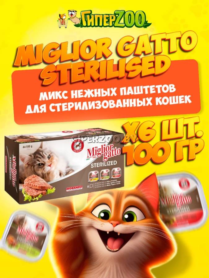 Miglior Gatto Sterilized – это специально разработанный влажный корм для стерилизованных кошек, который помогает поддерживать их здоровье и оптимальный вес. Корм представлен в удобных порционных упаковках и содержит три различных вкуса: курица с ветчиной, говядина с печенью, курица с ягненком и овощами. Это делает его не только полезным, но и разнообразным для вашего питомца.