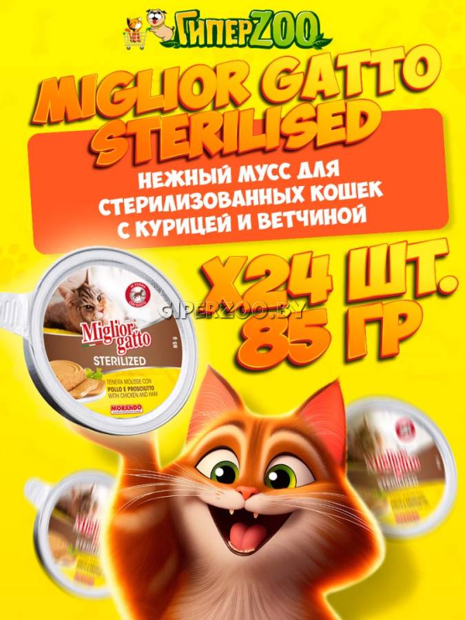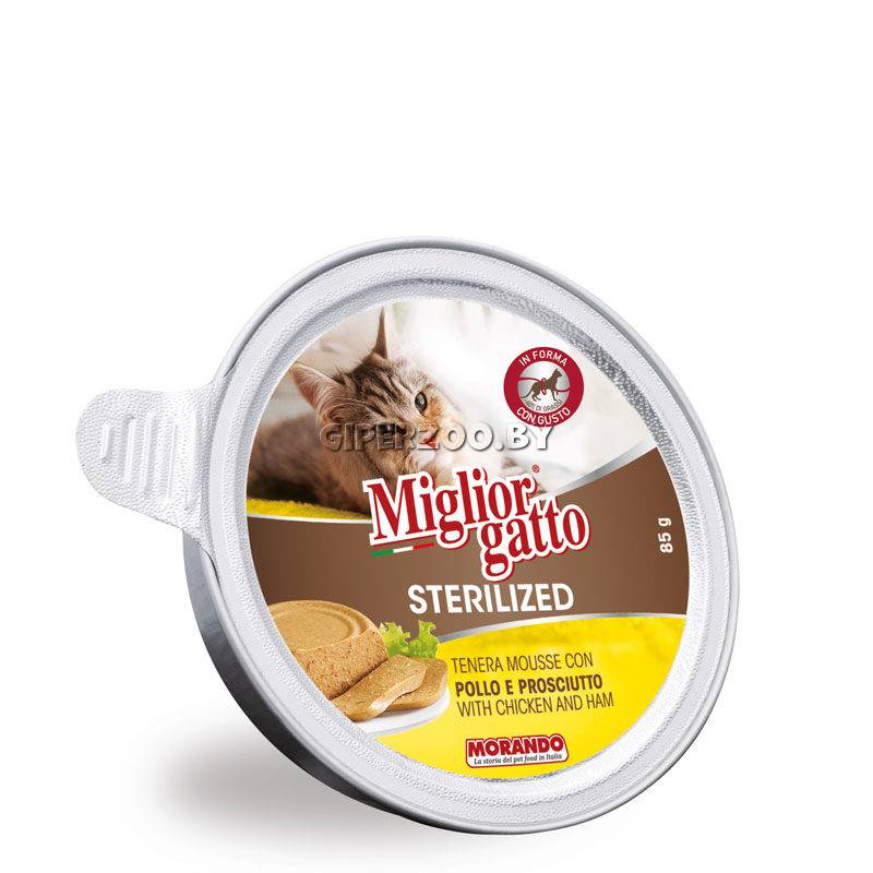 Miglior Gatto Sterilized Мусс с курицей и ветчиной — консервы для стерилизованных кошек.