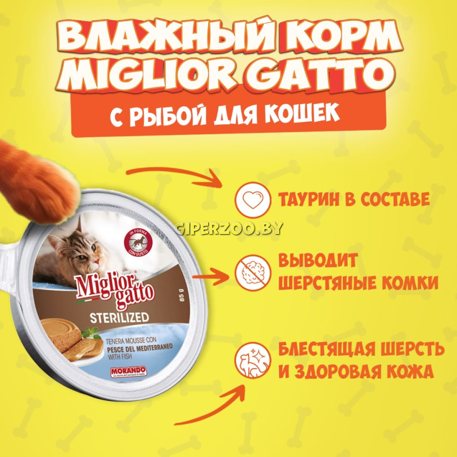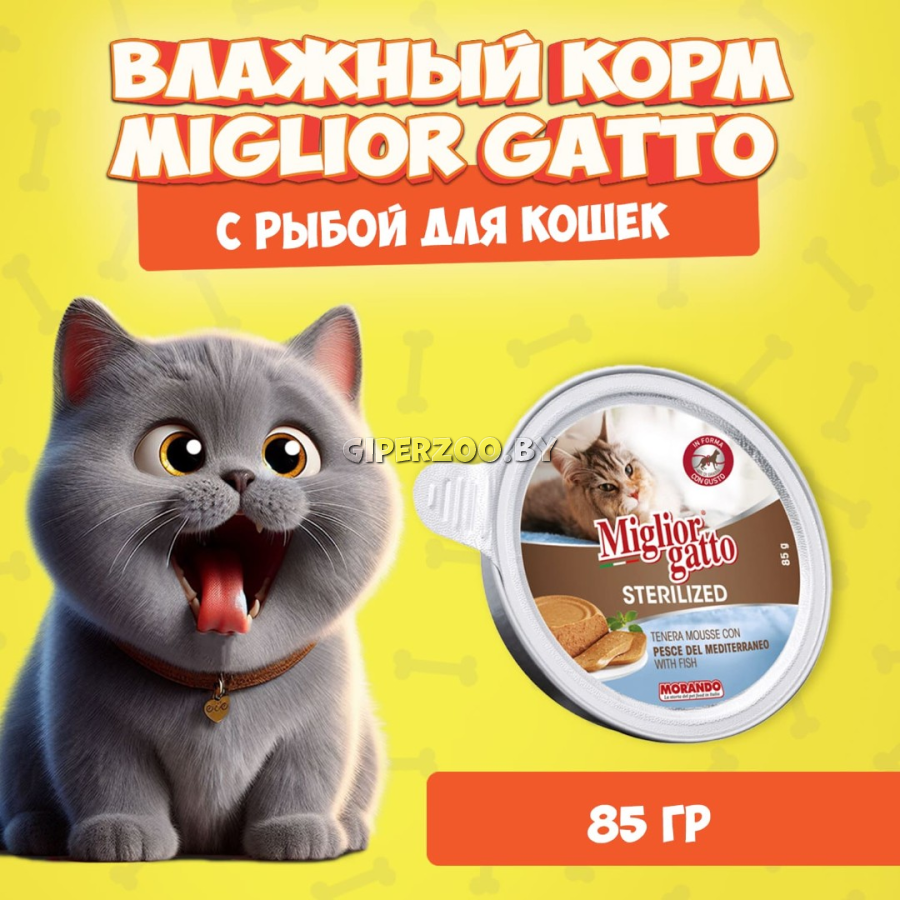 Miglior Gatto Sterilized Мусс с рыбой — консервы для стерилизованных кошек.