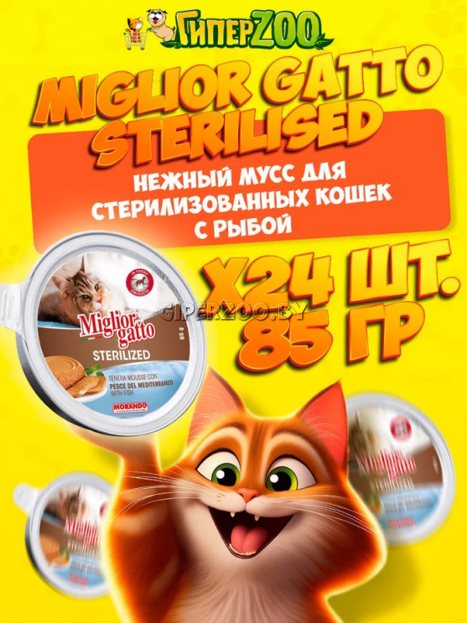 Miglior Gatto Sterilized Мусс с рыбой — консервы для стерилизованных кошек.