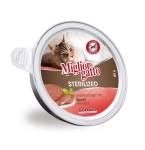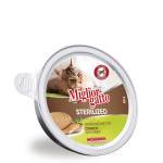 ПОЛНОРАЦИОННЫЙ КОРМ ДЛЯ КАСТРИРОВАННЫХ КОШЕК Мягкий мусс, идеально подходящий для обеспечения кошки разнообразным рационом и всеми необходимыми питательными веществами. в которых она нуждается. Идеальное сочетание нежного и изысканного вкуса, удовлетворяющее самые требовательные вкусы.Cjcnfd^ Мясо и производные животного происхождения (кролик 5%), минералы. АНАЛИТИЧЕСКИЕ СОСТАВЛЯЮЩИЕ: Влажность 80%, Сырой протеин 9%, Сырой жир 2,3%, Сырая клетчатка 0,8%, Сырая зола 3%. Пищевые добавки / кг: Витамин D3 177,7 МЕ, Витамин E 17,7 мг, Цинк (моногидрат сульфата цинка) 1,3 мг, Марганец (сульфат марганца моногидрат) 0,8 мг, йод (йодид калия) 0,2 мг.
