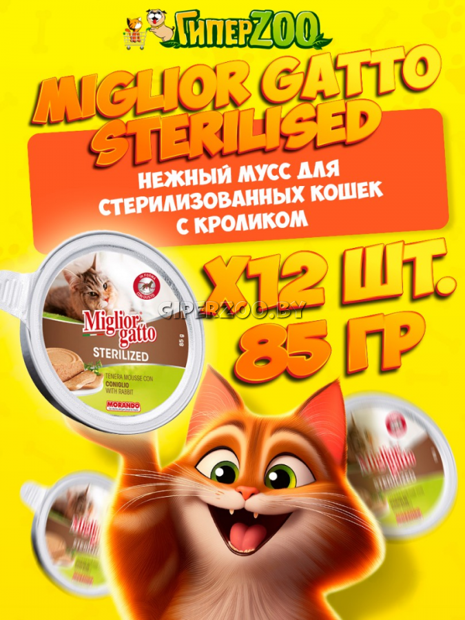 Miglior Gatto Steril мусс (кролик), 85 гр*12 шт