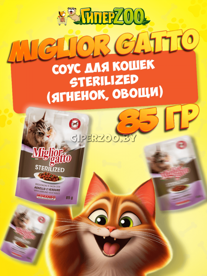 Вкусные маленькие кусочки в соусе от Migliorgatto Sterilized предлагают вашей кошке влажный корм с непревзойденным вкусом.