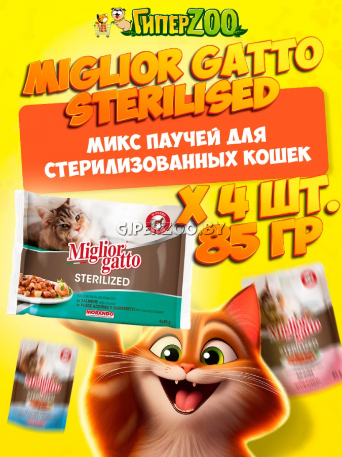 Miglior gatto Sterilized (лосось), 85 гр*4 шт