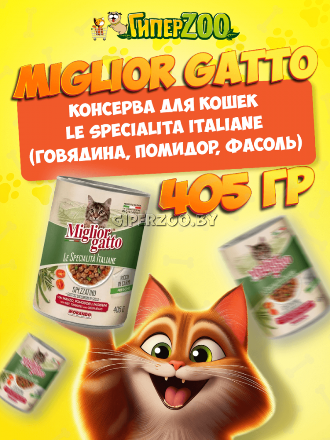 Miglior gatto Le Specialità Italiane кусочки в соусе (говядина, помидор, фасоль) - влажный корм для взрослых кошек.