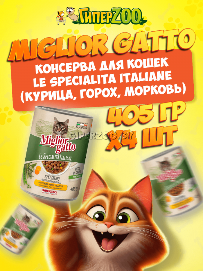 ПОЛНОЦЕННЫЙ КОРМ ДЛЯ ВЗРОСЛЫХ КОШЕК Вкусные кусочки в соусе по мотивам Спеццатино (рагу), с нежным свежим мясом на пару и вкуснейшими овощами и гарниром. Итальянские ароматические травы, такие как розмарин, шалфей и орегано. В рецептуру добавлен таурин, незаменимая аминокислота, которая очень важна для поддержания сердечной деятельности вашей кошки. Правильный баланс витаминов помогает поддерживать здоровье костей вашей кошки. Морковь изначально была получена из пищевой цепочки человека. Без добавления консервантов и искусственных красителей.Мясо и продукты животного происхождения - 36% (свежее мясо - 14%, курица - 4%), крупы, рыба и рыбные субпродукты, яйца и яичные субпродукты, овощи (сушеный горох - 0,25%, сушеная морковь - 0,25%, сушеный томатный порошок - 0,05%), минеральные вещества, продукты переработки зелени (розмарин - 44 мг/кг, шалфей 5,5 мг/кг, орегано 5,5 мг/кг). АНАЛИТИЧЕСКИЕ КОМПОНЕНТЫ: Влажность 80%, сырой белок 8%, сырой жир 5%, сырые волокна 0,5%, сырая зола 2,8%. Пищевые добавки/кг: Витамин