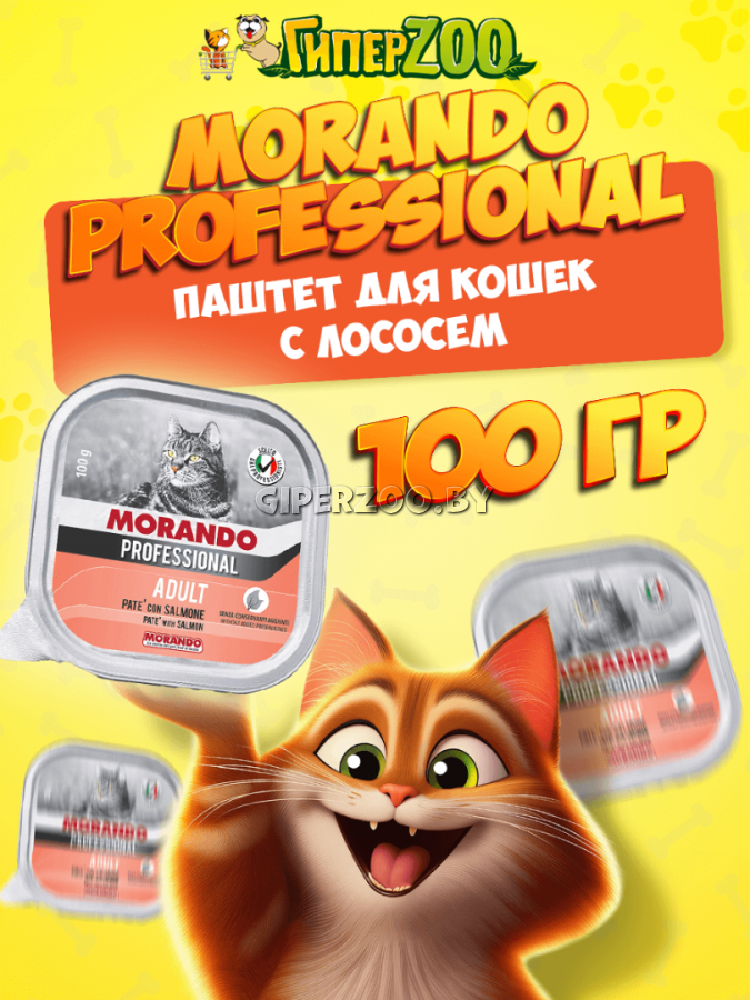 Morando Professional Сat Паштет с лососем — полноценный и сбалансированный корм для домашних животных. Легко усваиваемый и очень вкусный рецепт. Отличный питательный набор витаминов и минералов.