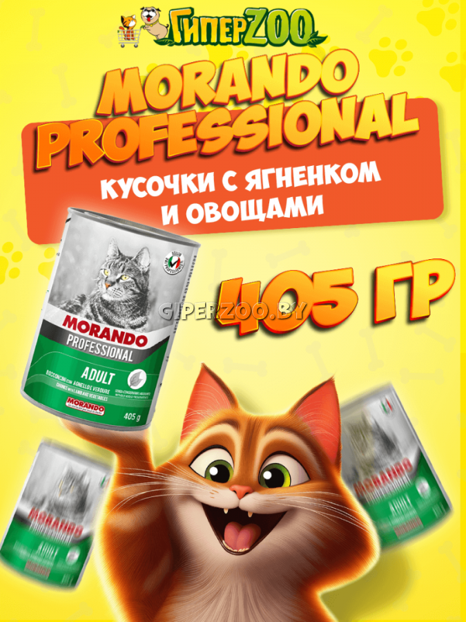Morando Professional Adult ( кусочки ягненок с овощами) - это сбалансированный влажный корм для котов всех пород, представленный в виде кусочков с ягненком и овощами.