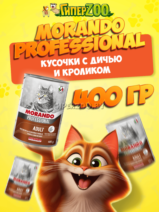 Morando Professional Adult ( кусочки с дичью и кроликом) - это сбалансированный влажный корм для котов всех пород, представленный в виде кусочков с дичью и кроликом.