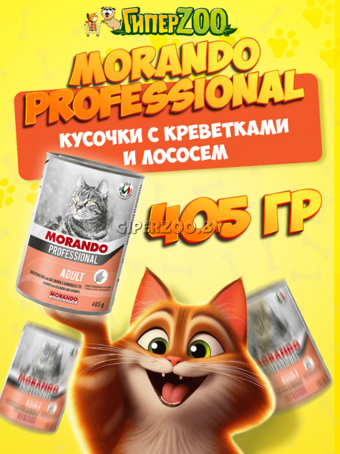 Morando Professional - это сбалансированный влажный корм для котов всех пород, представленный в виде кусочков с креветкой и лососем.