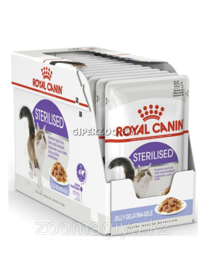 Консервированный корм в паучах Royal Canin Sterilised (в желе), 85 гр *12 шт - влажный корм для стерилизованных кошек старше 1 года. Новый влажный корм Sterilised способствует поддержанию здоровья мочевыделительной системы стерилизованных кошек.