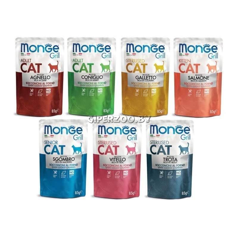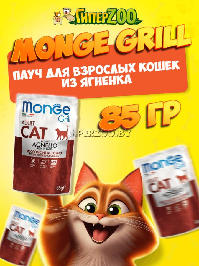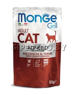 Monge (Монж) Cat Grill полнорационные беззерновые паучи из новозеландского ягненка для взрослых кошек и котов 85г.