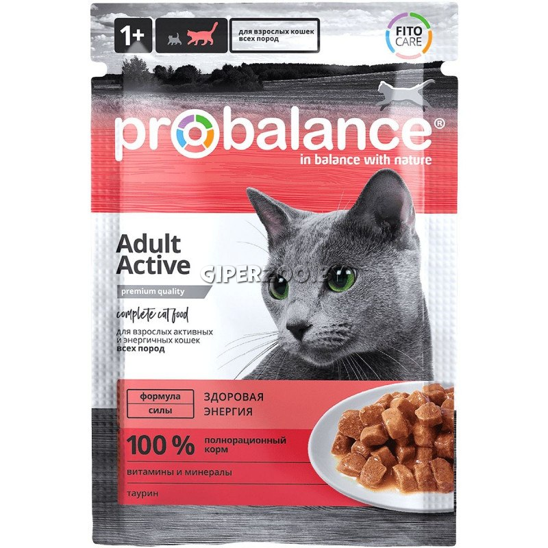 ProBalance Консервированный корм Active Cat - полнорационный сбалансированный консервированный корм премиум класса для взрослых кошек всех пород, ведущих активный образ жизни. ProBalance® ACTIVE предназначен для ежедневного кормления взрослых активных и энергичных кошек всех пород. Широкий ингредиентный состав высокого качества обеспечивает кошку всеми необходимыми питательными веществами. Корм обогащен витаминами, минералами и аминокислотами. Фито-композиция «Fitocare® for cats»- запатентованный сбор из целебных трав, разработанный практикующими ветеринарными специалистами. Обладает общеукрепляющим и тонизирующим свойствами, способствует долголетию вашей кошки. Корма ProBalance®- это баланс вкуса и пользы. Консервированные корма ProBalance® не содержат ГМО, красителей и консервантов, содержат таурин – незаменимую аминокислоту для организма кошек. Специально подобранное сырье и строгие требования к производству обеспечивают высокое качество продукта.