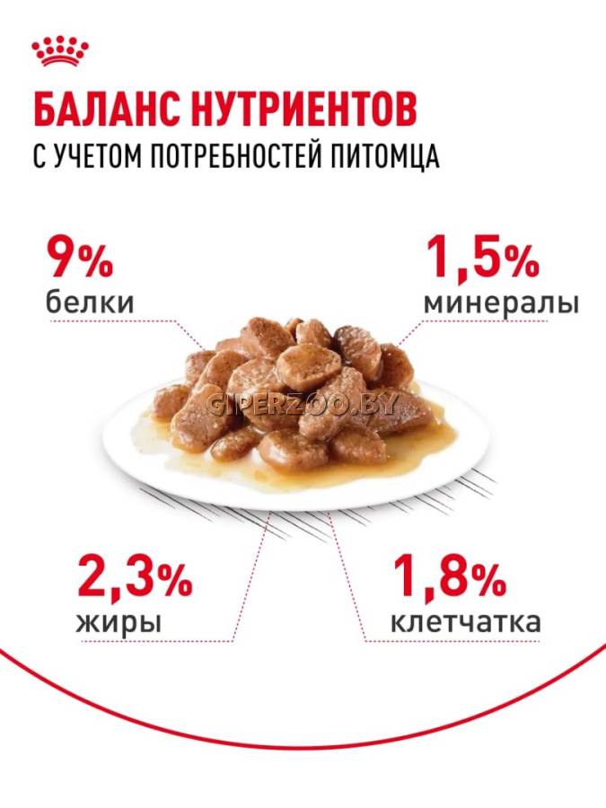 ROYAL CANIN® Sterilised в соусе обладает оптимальным макронутриентным профилем, который инстинктивно предпочитается взрослыми кошками. Благодаря этому они получают необходимые питательные вещества в достаточных количествах, что важно для поддержания их здоровья в целом.