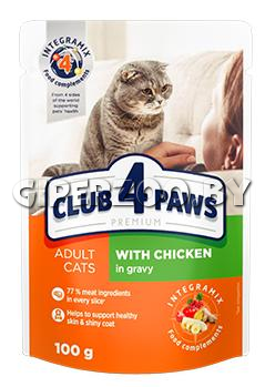 Club 4 Paws Premium для кошек с курицей в соусе - это полнорационный консервированный корм для взрослых кошек. Влажный премиум-рацион содержит 77% мяса и мясных ингредиентов в каждом кусочке и аппетитный соус прекрасно нравятся взрослым кошкам.