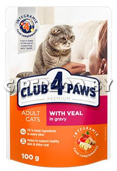 Club 4 Paws Premium для кошек с телятиной в соусе - это полнорационный консервированный корм для взрослых кошек. Влажный премиум-рацион содержит 78% мясных ингредиентов в кусочках и аппетитный соус, прекрасно нравятся взрослым кошкам. Комплекс ненасыщенных жирных кислот Омега 3 + Омега 6 поддерживает кожу здоровой, а шерсть блестящей. Рацион обогащенный формулой ИNTEGRAMIX для общей поддержки здоровья и иммунитета любимца. Состав: 78% мяса и продуктов животного происхождения в кусочках, в частности из телятины 9%, злаки, экстракты растительного белка, минералы, масла и жиры (масло лосося 0,22%), фрукты (банан 0,1%, боярышник 0, 03%) *, овощи (помидоры 0,11%) *, имбирь * 0,005%.