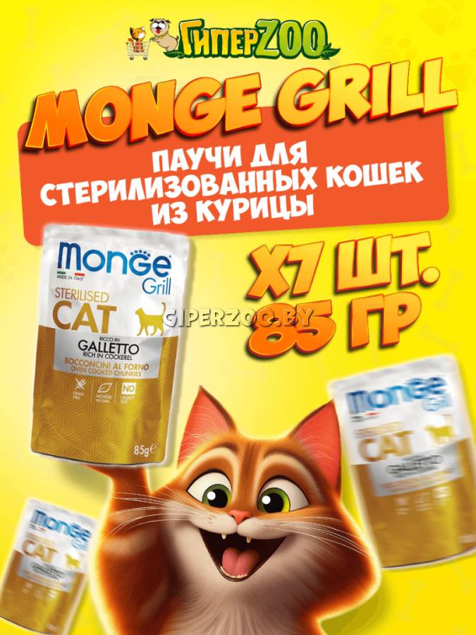 Monge Cat Gril Sterilised (желе, птица), 85 гр*7 шт