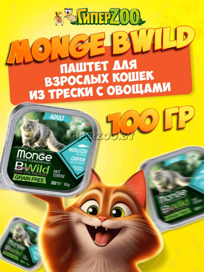 Monge Cat BWild Adult (паштет, треска с овощами), 100 гр