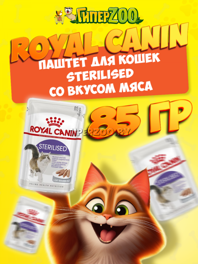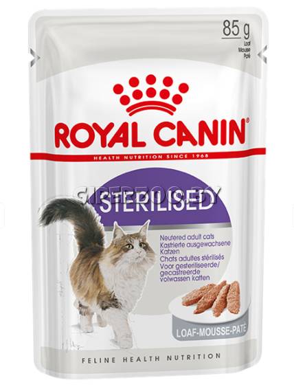 Стерилайзд: влажный корм для стерилизованных взрослых кошек. После кастрации или стерилизации энергетические потребности кошки снижаются на 30%, притом что потребление корма может возрасти на 20%. Паштет для кастрированных/стерилизованных кошек с тенденцией к полноте, в возрасте от 1 до 7 лет.