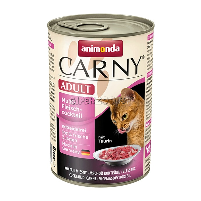 Carny ® Adult - это сбалансированное, вкусное и здоровое питание самого высокого уровня для взрослых кошек возраста 1-6 лет. Тщательно отобранное, свежее мясное сырье гарантирует непревзойденный вкус и массу удовольствия для кошек. Carny ® Adult обеспечивает взрослых кошек всеми жизненно важными питательными веществами. Не содержит злаков, сои, красителей, ароматизаторов и искусственных добавок. Содержит естественный таурин, видимые натуральные куски мяса.