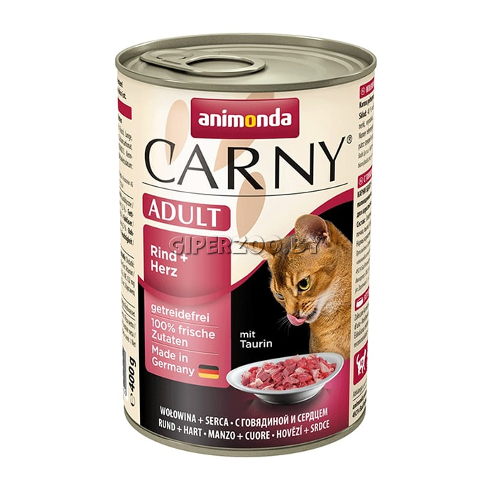мясо и животные субпродукты (говядина 85%, сердце 15%), витамины и минералы.