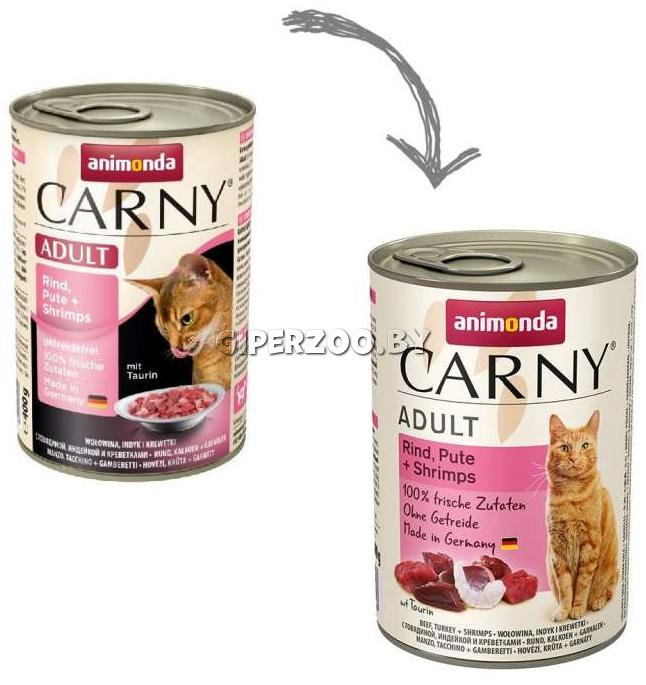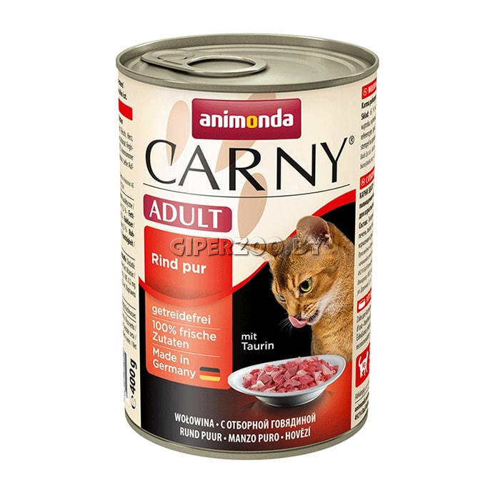 Carny ® Adult - это сбалансированное, вкусное и здоровое питание самого высокого уровня для взрослых кошек возраста 1-6 лет. Тщательно отобранное, свежее мясное сырье гарантирует непревзойденный вкус и массу удовольствия для кошек. Carny ® Adult обеспечивает взрослых кошек всеми жизненно важными питательными веществами. Не содержит злаков, сои, красителей, ароматизаторов и искусственных добавок. Содержит естественный таурин, видимые натуральные куски мяса.