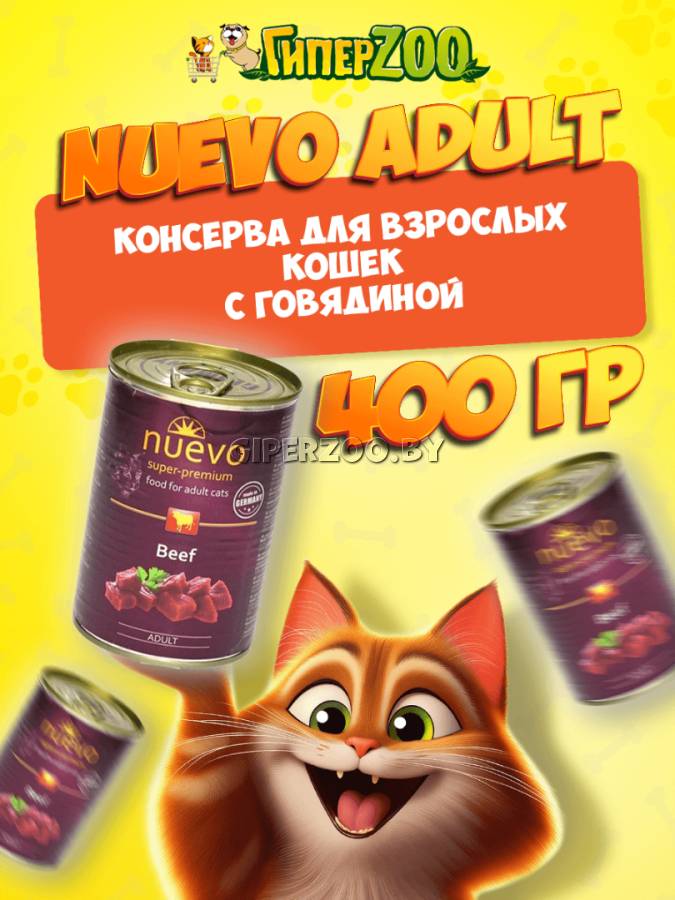 Консервы для взрослых кошек Nuevo Adult Cat (говядина), 400 гр – сбалансированный влажный корм для взрослых кошек, изготовленный из высококачественной говядины. Богатый источник белка и необходимых питательных веществ, корм поддерживает здоровье, активность и отличное самочувствие вашего питомца.