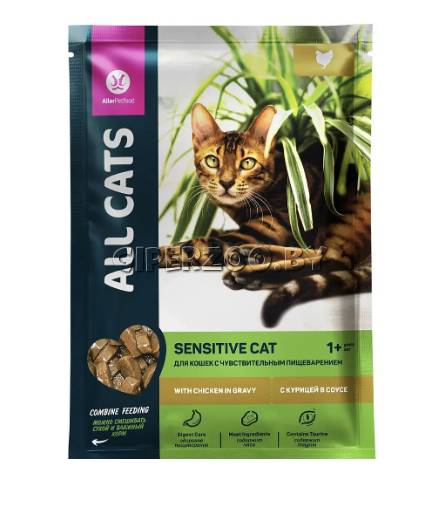 Влажный корм ALL CATS содержит таурин - незаменимую аминокислоту, которая помогает предотвратить заболевания глаз и укрепляет иммунную систему кошек.