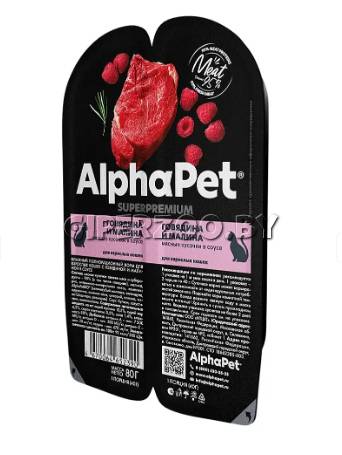 AlphaPet Superpremium Говядина и малина в соусе – влажный полнорационный корм для взрослых кошек с говядиной и малиной в соусе.