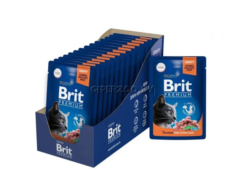 Brit Premium Cat для стерилизованных кошек с лососем в соусе, 85 гр*14 шт