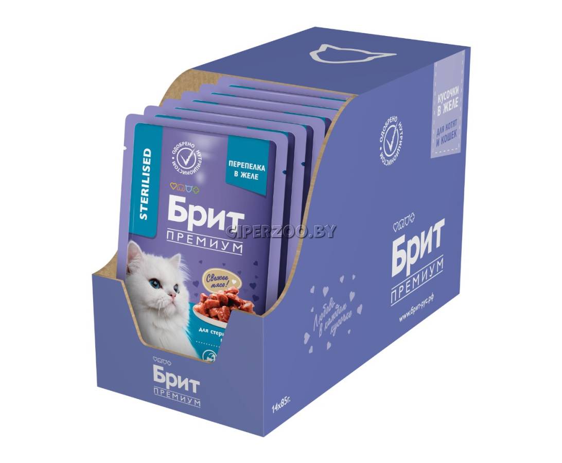Паучи Brit Premium однозначно заинтересуют вашу кошку и станут для нее любимым блюдом. Влажный корм содержит все необходимые витамины и минералы, которые необходимы стерилизованному питомцу. Таурин в составе – важный ингредиенты для поддержания остроты зрения и здоровья сердечно-сосудистой системы кошек.