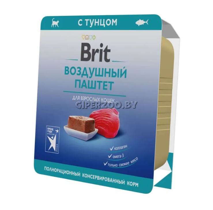 Brit Premium Воздушный паштет для взрослых кошек (Тунец) – влажный корм для кошек с тунцом. Технология производства воздушных паштетов — аэрация. Аэрация означает насыщение воздухом. Воздушные паштеты — высокотехнологичный продукт, который производится в специальном аппарате — паштетном эмульситаторе. Сырье одновременно измельчается, смешивается и взбивается, приобретая легкую, воздушную консистенцию, которую легко и приятно есть питомцам. Сбалансированный состав корма содержит не менее 74 % мяса, витамины и минералы для крепкого иммунитета, цикорий — источник клетчатки и пребиотика инулина, юкку, в которой содержатся фенолы и сапонины, способствующие снижению различных воспалений, помогающие работе печени, стимулирующие пищеварение.