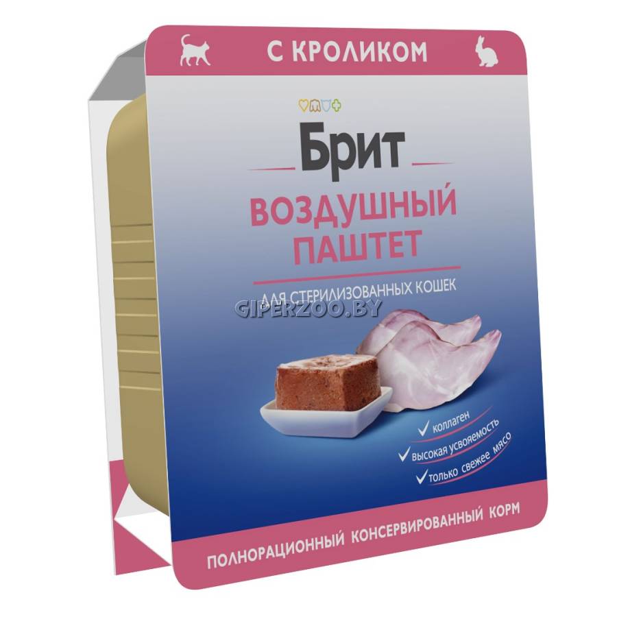 Брит Премиум Воздушный паштет для стерилизованных кошек с кроликом Cat Sterilised (Brit Premium) - влажный корм.