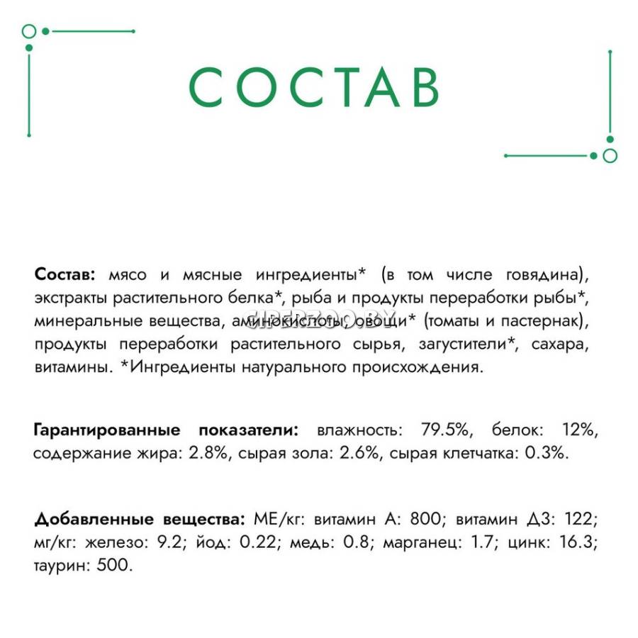 - Влажные корма Гурмэ® не содержат искусственных ароматизаторов и консервантов.