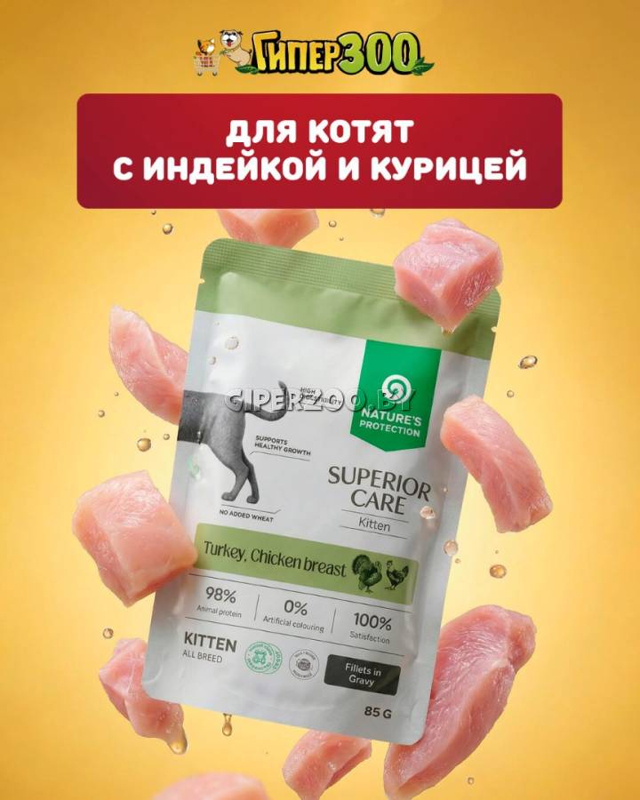 Корм для котят Nature's Protection Superior Care Kitten — это решение для тех, кто хочет не только вкусный, но и функциональный корм. Индейка и куриная грудка — легкоусвояемые белки, подходящие для чувствительных котят, — обеспечивают организм важными питательными веществами. Жирные кислоты Омега-3 ухаживают за кожей, а формула Microzeogen® — комплекс витамина Е с цинком, медью и марганцем — поддерживает естественные процессы детоксикации организма, укрепляя клеточную антиоксидантную защиту.