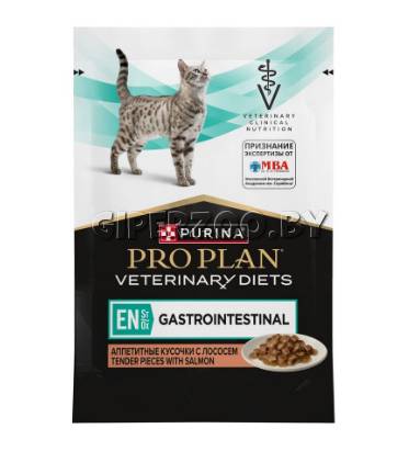 Purina Pro Plan EN ST/OX Gastrointestinal (лосось), 85 гр - корм консервированный полнорационный диетический для взрослых кошек и котят для снижения проявлений острого нарушения всасывающей функции кишечника, способствует восполнению потери питательных веществ и выздоровлению, с лососем. Разработан с повышенным уровнем электролитов, высокоусвояемых ингредиентов, высокой энергетической ценностью и высокой концентрацией незаменимых питательных веществ.
