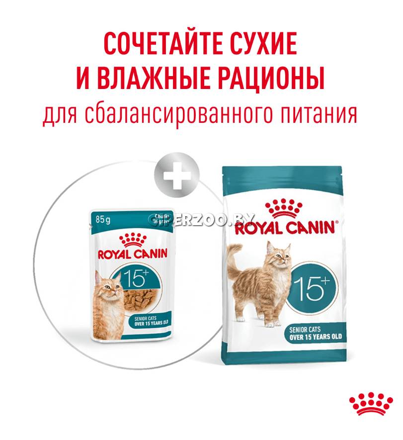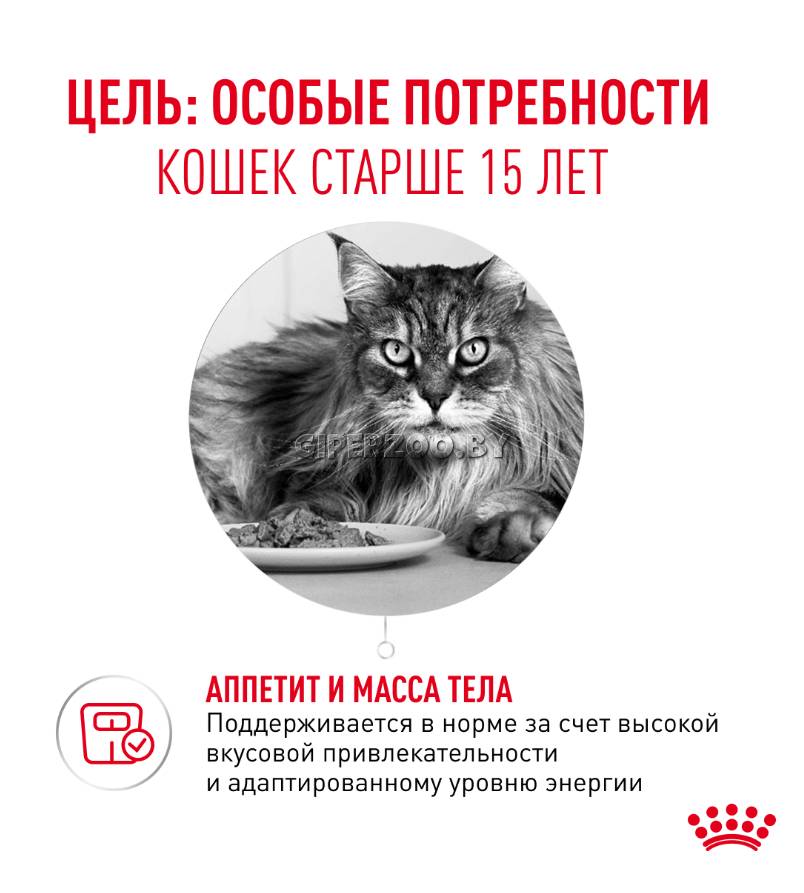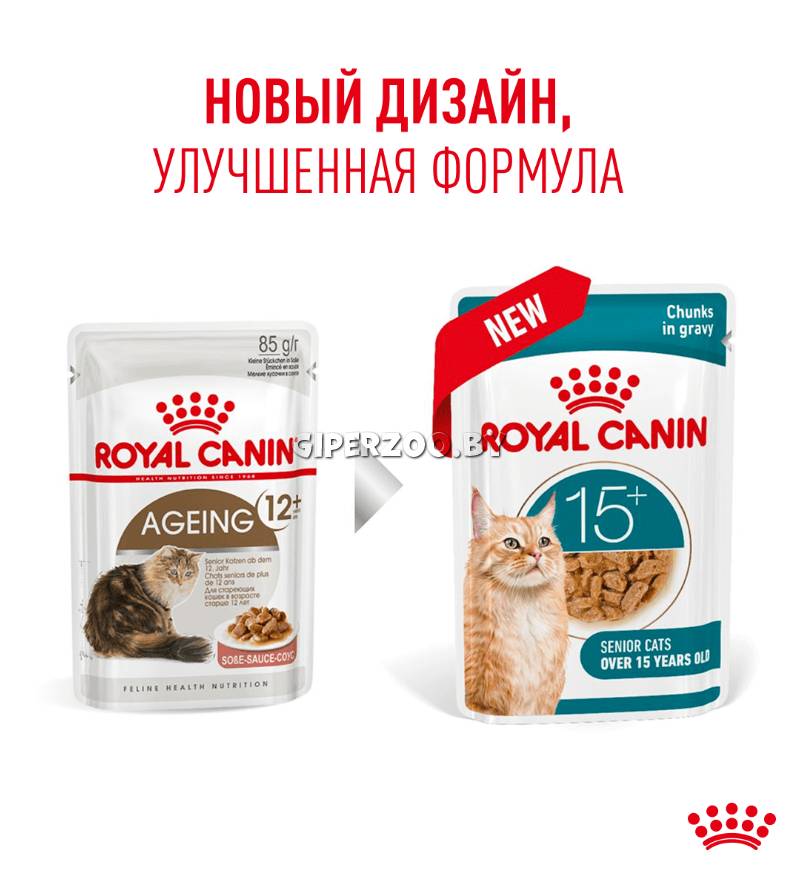Royal Canin Ageing +15 Cat (соус), 85 гр – это влажный корм для кошек в возрасте 15 лет и старше, разработанный специально для пожилых кошек и протестированный с их участием. Корм обладает удобной для поедания текстурой, обеспечивающей вашей кошке положительный кормовой опыт.
